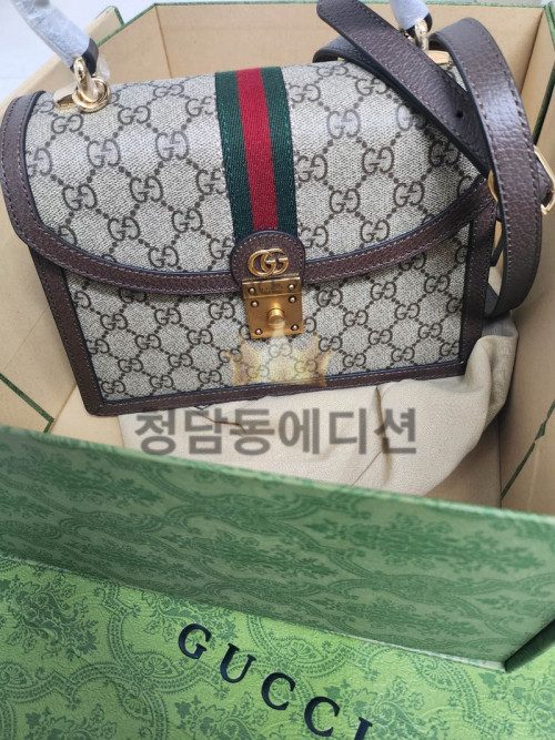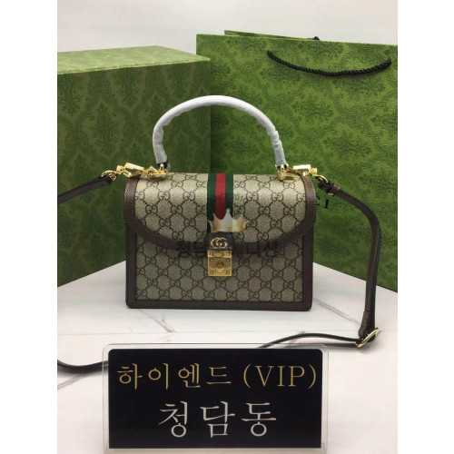 핸드백은 브랜드 시그니처 듀얼 G 패턴 캔버스로 제작