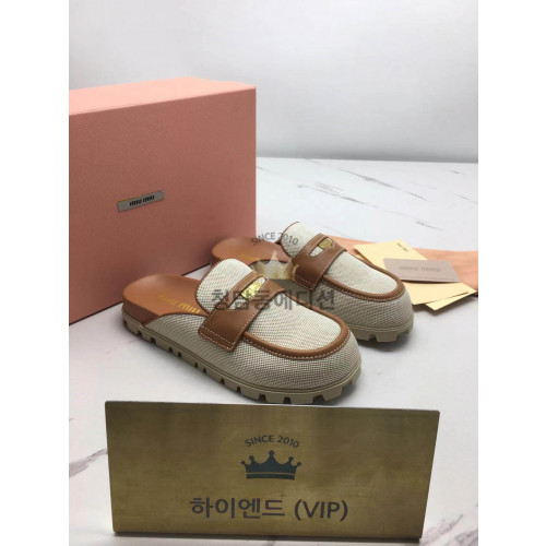 미우미우 캔버스 및 가죽 뮬