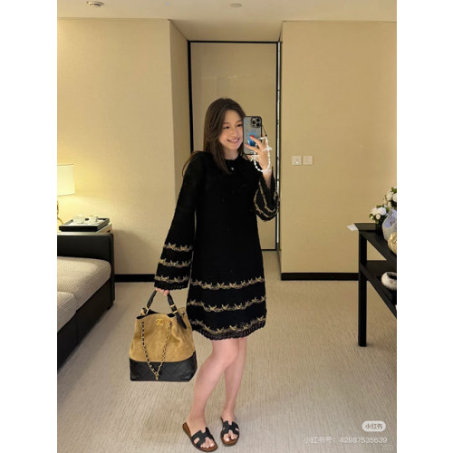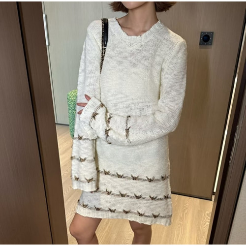 샤넬 자수 디테일 니트 원피스 (컬러 아이보리, 블랙)