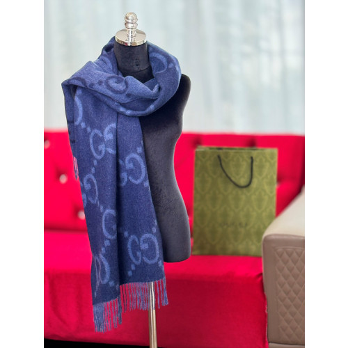구찌 캐시미어 자카드 머플러 (컬러 네이비)