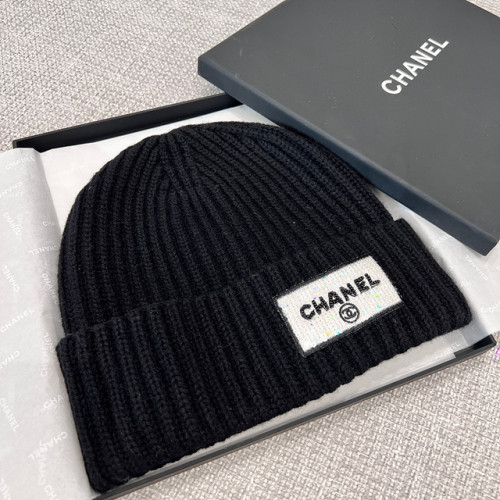 샤넬 라벨 패치 리브 니트 비니 & 머플러