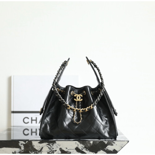 • 샤넬 25B 크루즈 뉴 호보백그레인드 카프스킨 스몰 (블랙 체인) (25백)