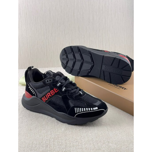 버버리 bbr 로고 프린트 레더 스웨이드 메시 스니커즈 (남성용)