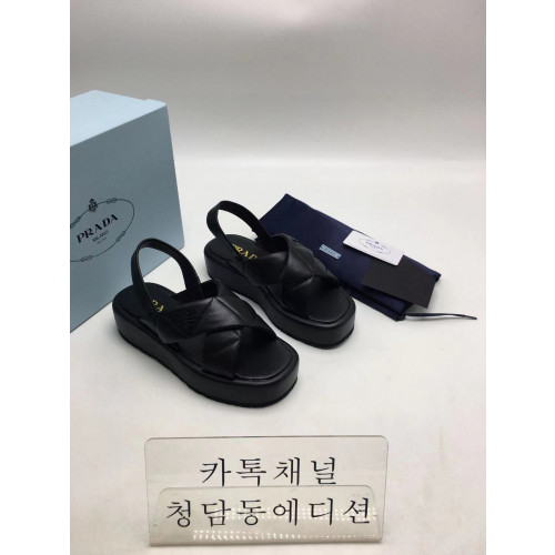 프라다 퀄팅 레더 크로스 스트랩 플랫폼 샌들