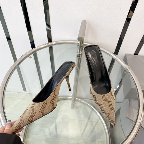 발렌시아가 스퀘어 나이프 자카드 캔버스 레더 펌프스 (굽 8cm)