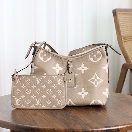 부드러운 엠보스드 모노그램에 톤온톤 대비가 돋보이는 바이컬러 디자인