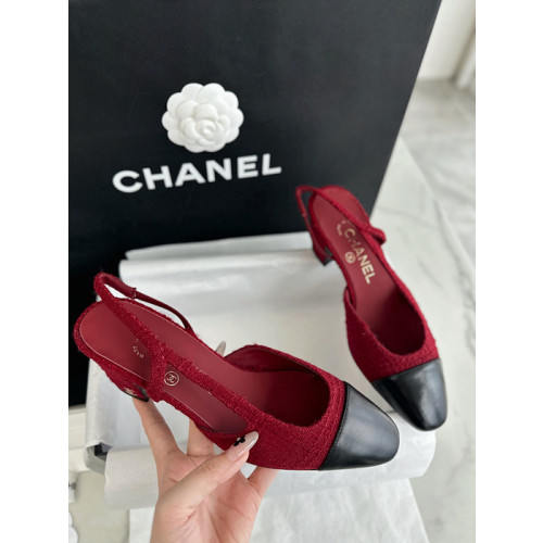 샤넬 트위드 슬링백 미들힐