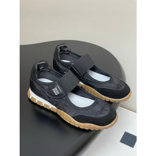 미우미우 타이어 테크니컬 패브릭 스웨이드 발레리나 스니커즈